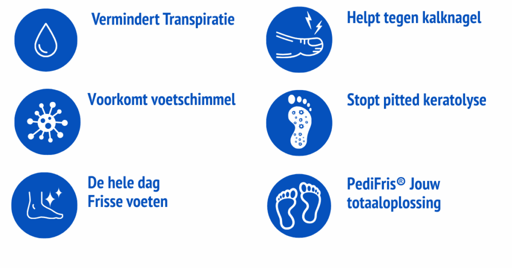 By sprinkling PediFris® Classic in your shoes, you create a hygienic environment that counteracts the growth of microorganisms. This not only ensures long-lasting fresh feet and shoes, but also provides powerful, continuous protection against sweaty feet, smelly feet, athlete's foot, and nail fungus.